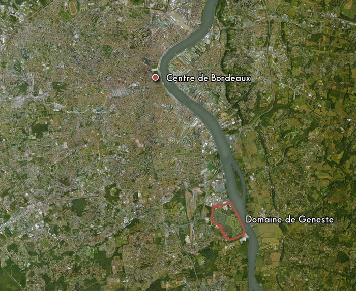 Le projet est situé au sud-est du centre de Bordeaux (à 10 min en voiture) et se développe sur un terrain de 170 hectares sur le territoire de Villenave-d’Ornon, entre la Garonne et l’avenue Mirieu de Labarre, au sud du centre commercial des Rives d’Arcins. |
